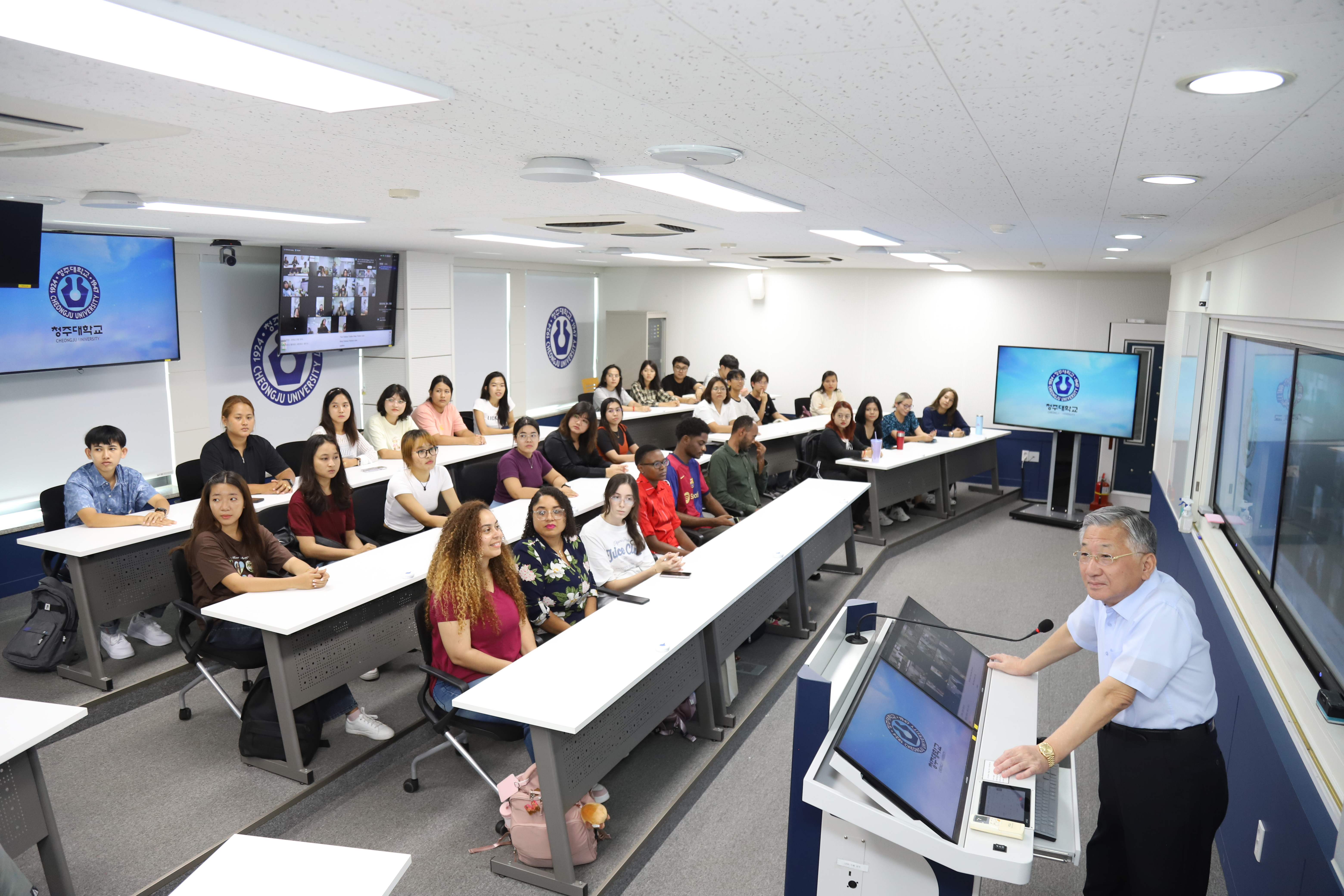 우리대학, ‘하이플렉스 강의실’ 운영에 호응![]() ▲지난달 4일, 우리대학 김윤배 총장이 보건의료과학대학 내 하이플렉스 강의실에서 다양한 외국인 유학생을 대상으로 학교의 각종 시설 등을 설명하고 있는 모습이다. / 사진=대외협력팀