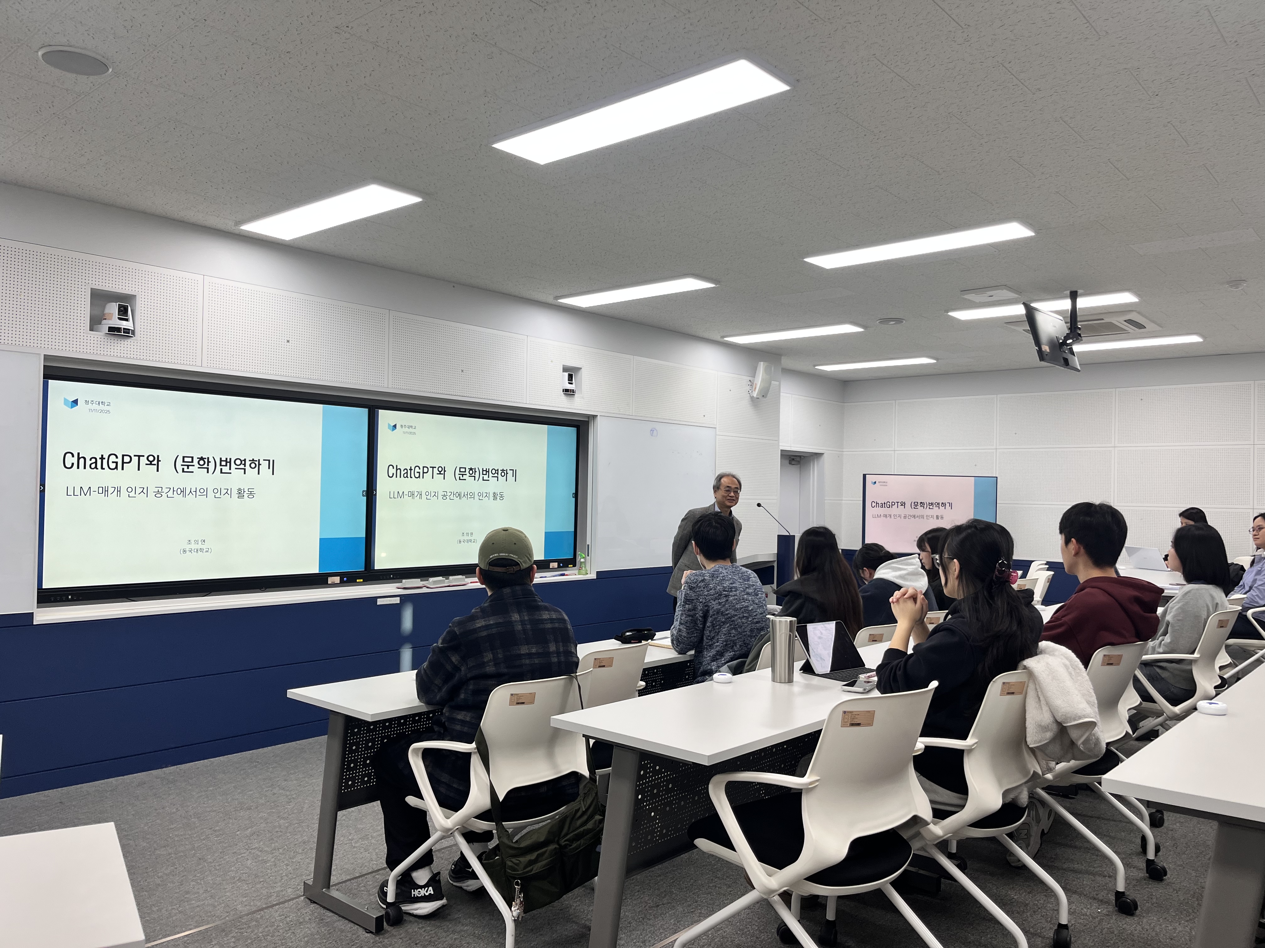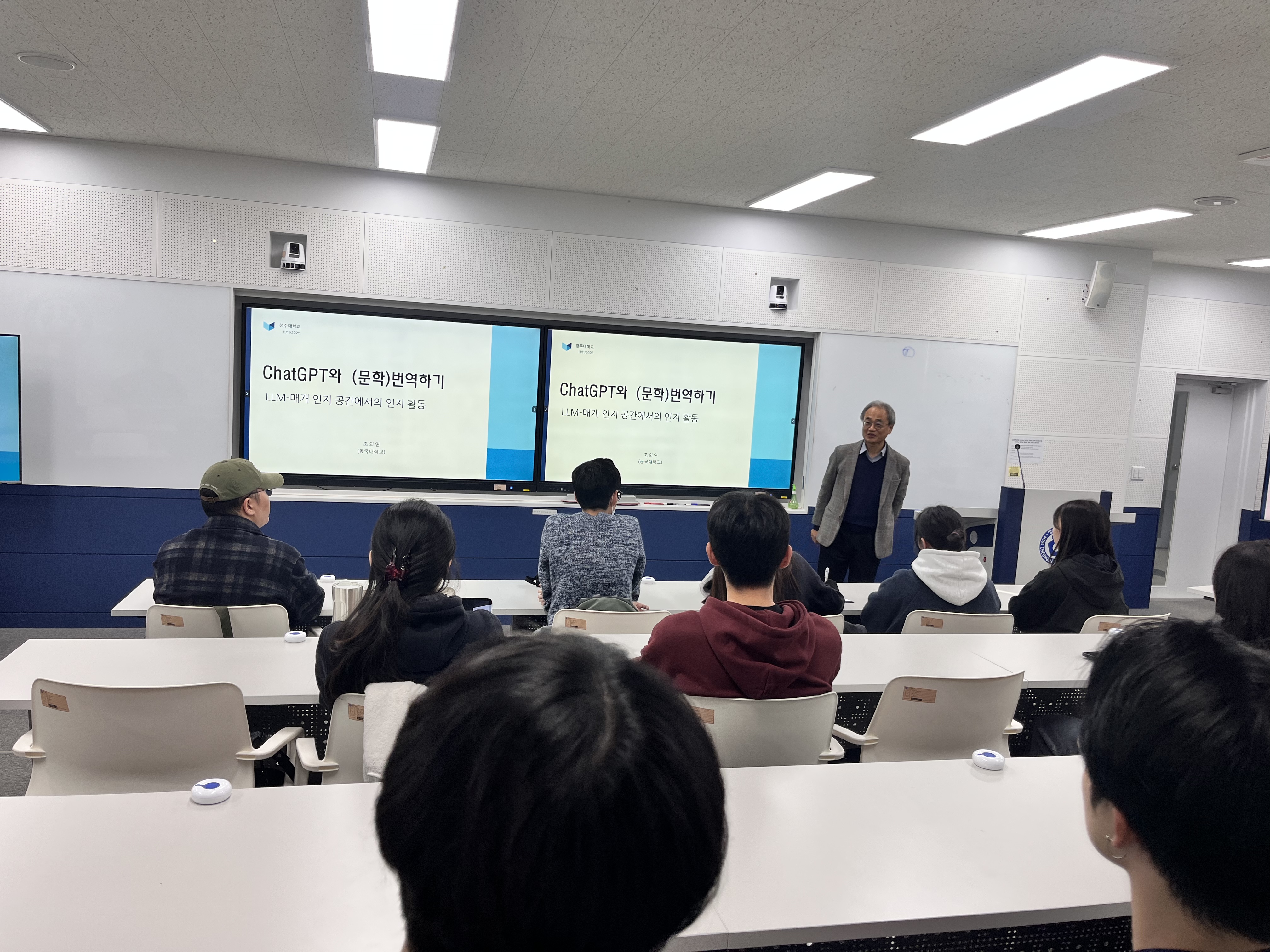 📍 주제: AI와 언어학의 접목 – 확장인지로서의 대규모 언어모델 사용 🎓 대상: 영어영문학과 1~4학년 👤 강연자: 동국대학교 영어통번역학전공 조의연 명예교수님 청주대학교 영어영문학과에서는 ‘AI와 언어학의 접목 – 확장인지로서의 대규모 언어모델 사용’을 주제로 동국대학교 영어통번역학전공 조의연 명예교수님의 특강이 진행되었습니다. 이번 특강은 인공지능 기술의 발전과 함께 변화하는 언어학 연구와 영어 관련 진로 영역에 대한 이해를 높이기 위해 마련되었습니다. 최근 대규모 언어모델(LLM)과 언어학의 융합이 학문과 산업 전반에서 중요한 화두로 떠오르면서, 영어영문학 전공의 새로운 가능성을 살펴보는 뜻깊은 시간이었습니다. 조의연 교수님께서는 ChatGPT와 같은 생성형 AI를 단순한 도구(tool) 가 아닌 함께 사고하는 협력자(co-agent) 로 바라보아야 한다고 말씀하셨습니다. “ChatGPT 로 번역하기”가 아닌 “ChatGPT 와 번역하기”처럼, AI와의 대화 속에서 스스로 묻고 답하며 사고를 확장하는 태도의 중요성을 강조하셨습니다. 이번 특강을 통해 영어영문학도로서 우리가 익히는 언어의 힘이 AI 시대에도 여전히 중심적인 가치로 작용함을 느낄 수 있었습니다. 앞으로도 영어영문학과는 이러한 융합적 사고를 넓히는 다양한 비교과 활동을 꾸준히 이어갈 예정입니다. |