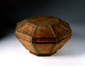 | 유물명 | 종이팔각반짇고리 | | Sewing Box | | 크기 | 지름 32.5㎝ 높이 18.5㎝ | | 소장기관 | 청주대학교 박물관 | 반짇고리는 가위, 실 천조각 등 바느질 도구들을 담아두는 상자로 대로 엮어 바구니 형태로 만들거나 나무, 종이 등으로도 만들었다. 이것은 두꺼운 종이로 8각형 상자를 만들고 색종이로 태극무늬와 바탕색 등을 오려붙여 장식하였다. | 유물정보의 설명 및 사진에 대한 저작권은 청주대학교박물관에 있으며, 청주대학교박물관의 동의 없이 소장품 정보를 무단으로 복제하거나, 상업적으로 이용할 수 없습니다. |