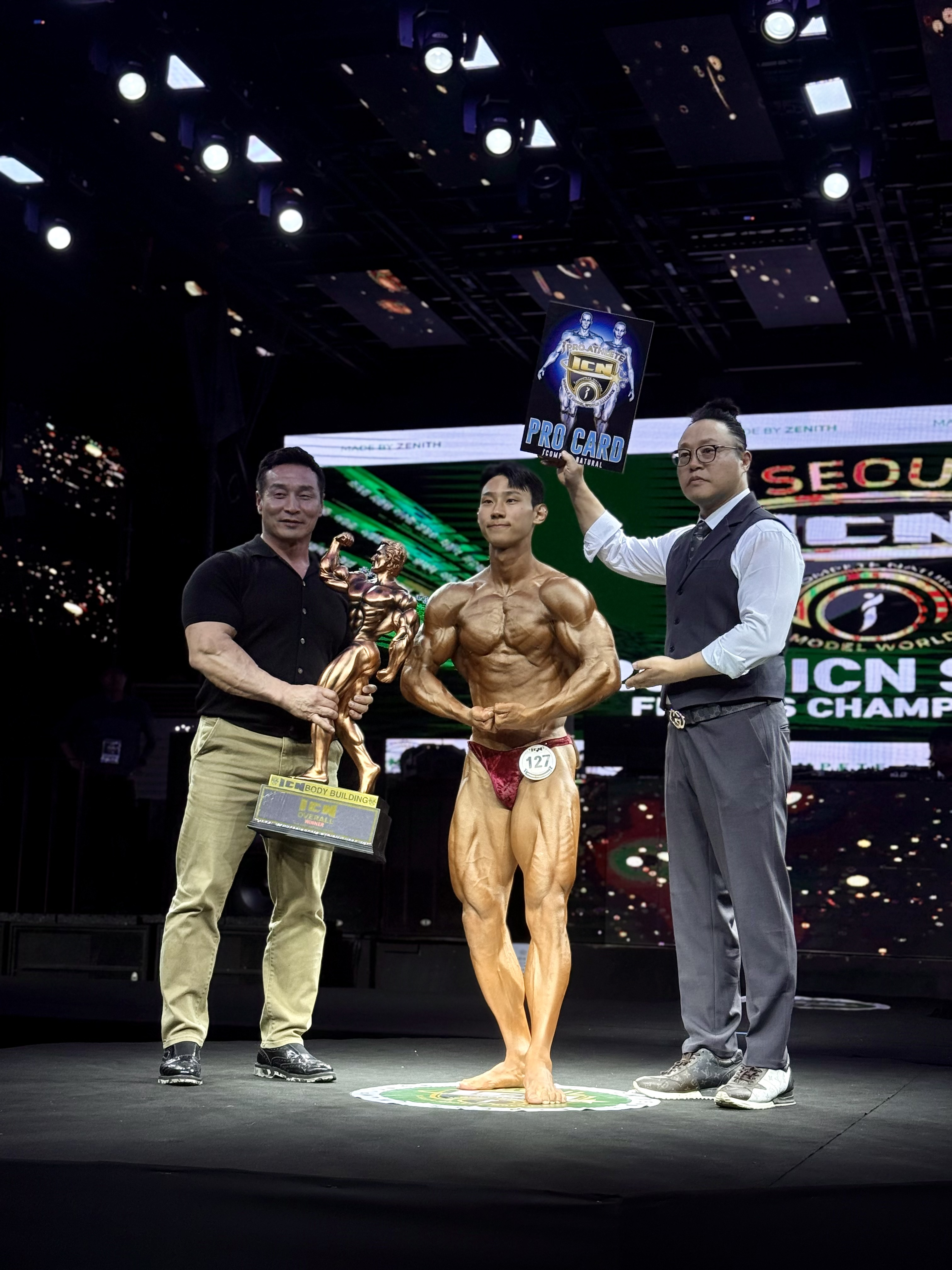 14일 청주대에 따르면 최근 열린 2025 ICN 서울 피트니스 챔피언십(2025 ICN SEOUL FITNESS CHAMPIONSHIP) 대회에서 청주대 스포츠재활학과 4학년 안재환 학생은 눈부신 활약을 펼치며 대회 최고 영예인 보디빌딩 전 체급 오버롤 그랑프리를 차지하고, ICN 보디빌딩 PRO 카드를 획득했다.